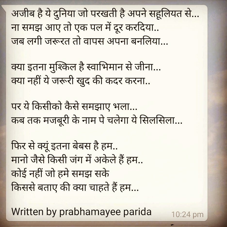 The only way to express your feelings is the way how you express. " The true alchemist do not change lead into gold ; they change the world into Words ". - William H.gass. I wish to be that change. I love to express my thoughts through my Poetry, Blog & Quote. I love to capture moments & share to the world. As per the quote of my page, "I am becoming the best version of myself " View more posts