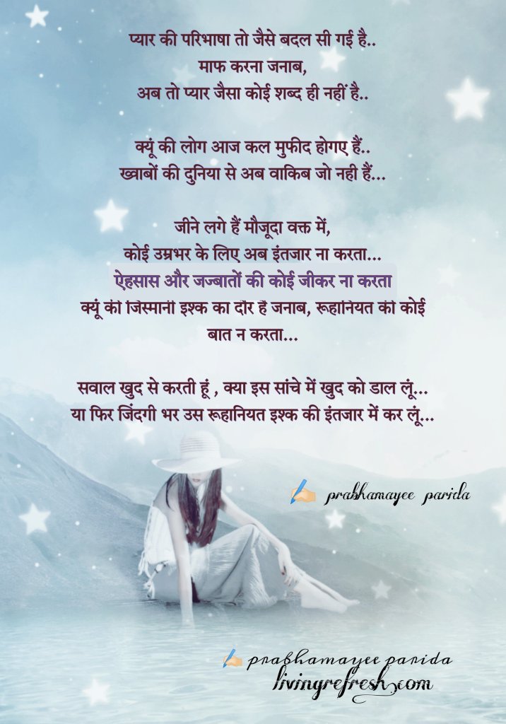 या फिर जिंदगी भर उस रूहानियत इश्क की इंतजार में कर लूं…